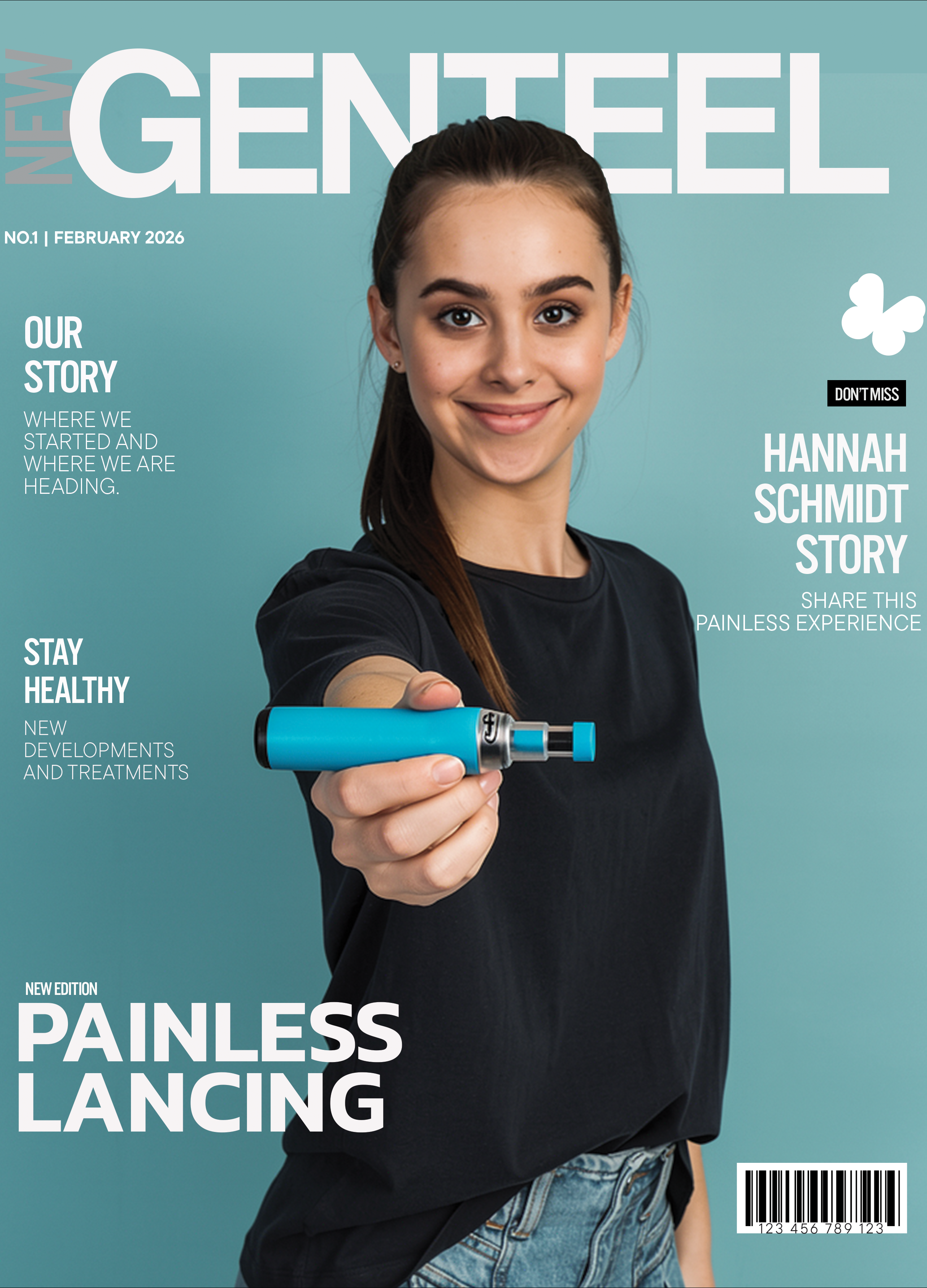 The Genteel Exclusive is a step up from our original design that exclusively uses our patented Butterfly Touch lancets. The combination of the two cuts down on nerve agitating vibration in the lancing process meaning less pain sensation overall. The device includes a Nozzle, customizable contact tips and 100 pack of our Butterfly Touch lancets.